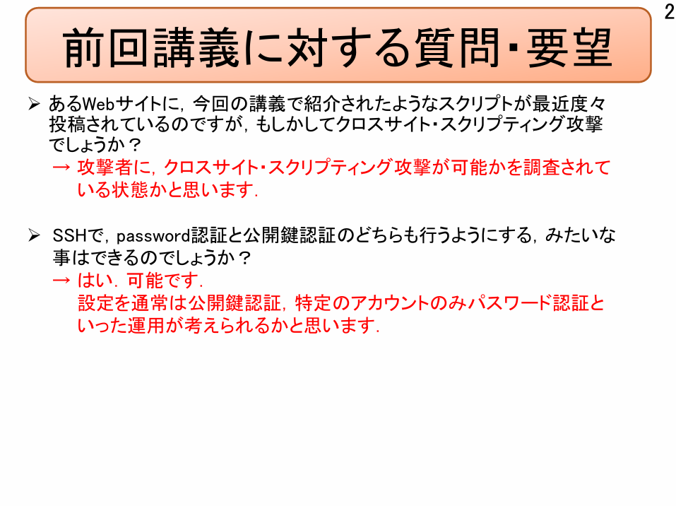 講義の終盤では、前回の講義終了後に受講生よりいただいていた質問にお答えする時間が